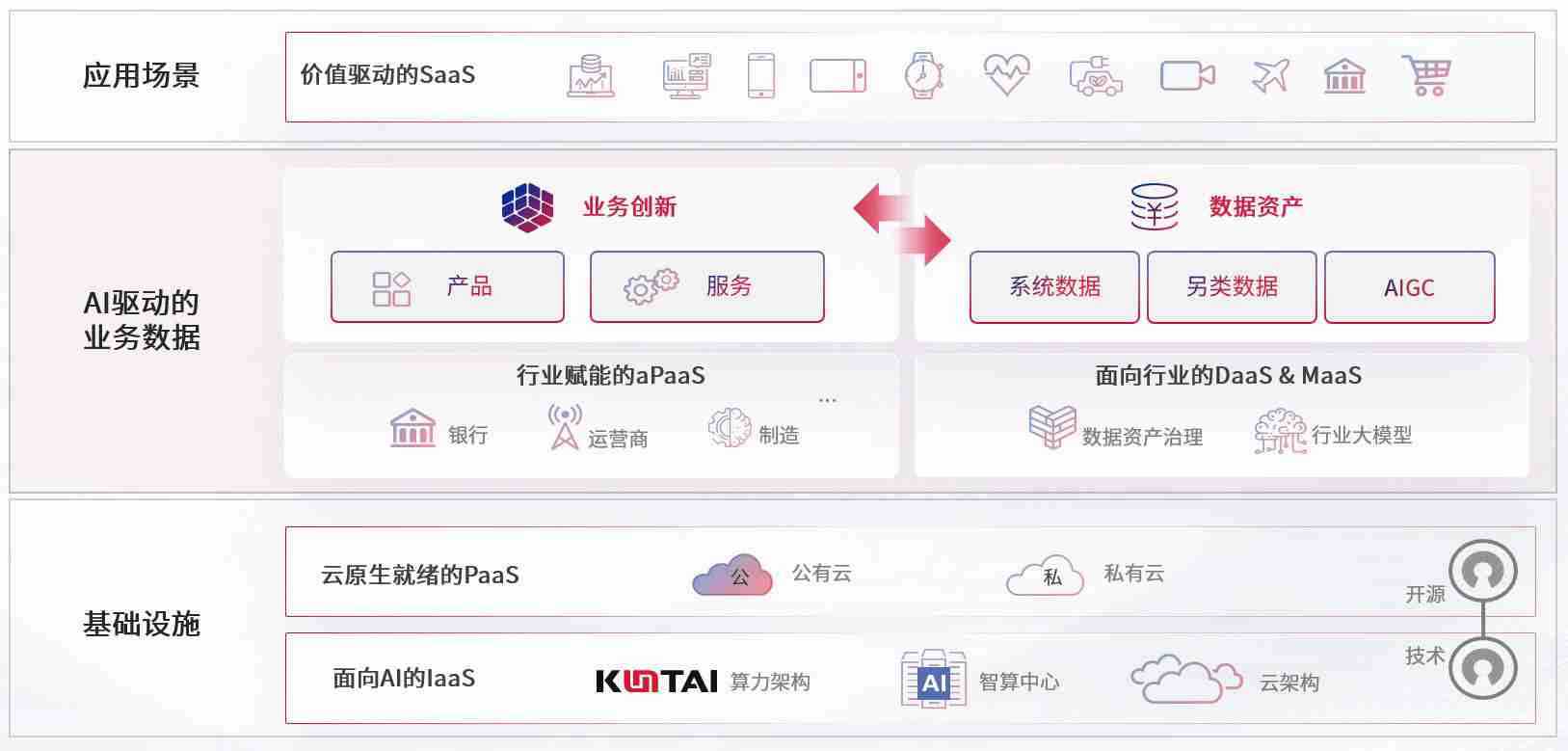 数字时代,,,围绕企业数字化转型的关键要素,,PG数码开创性的提出数云融合战略和技术体系框架,,,,着力在云原生、、、、数字原生、、、、AI原生和信创产业上架构产品和服务能力,,,为处在不同数字化转型阶段的快消零售、、、汽车、、、、金融、、、医疗、、政企、、、教育、、运营商等行业客户提供泛在的敏捷IT能力和融合的数据驱动能力,,,,构建跨界融合创新的数字业务场景和新业务模式,,,助力企业级客户建立面向未来的核心能力和竞争优势,,,,全面推动社会的数字化、、、智能化转型升级。。。