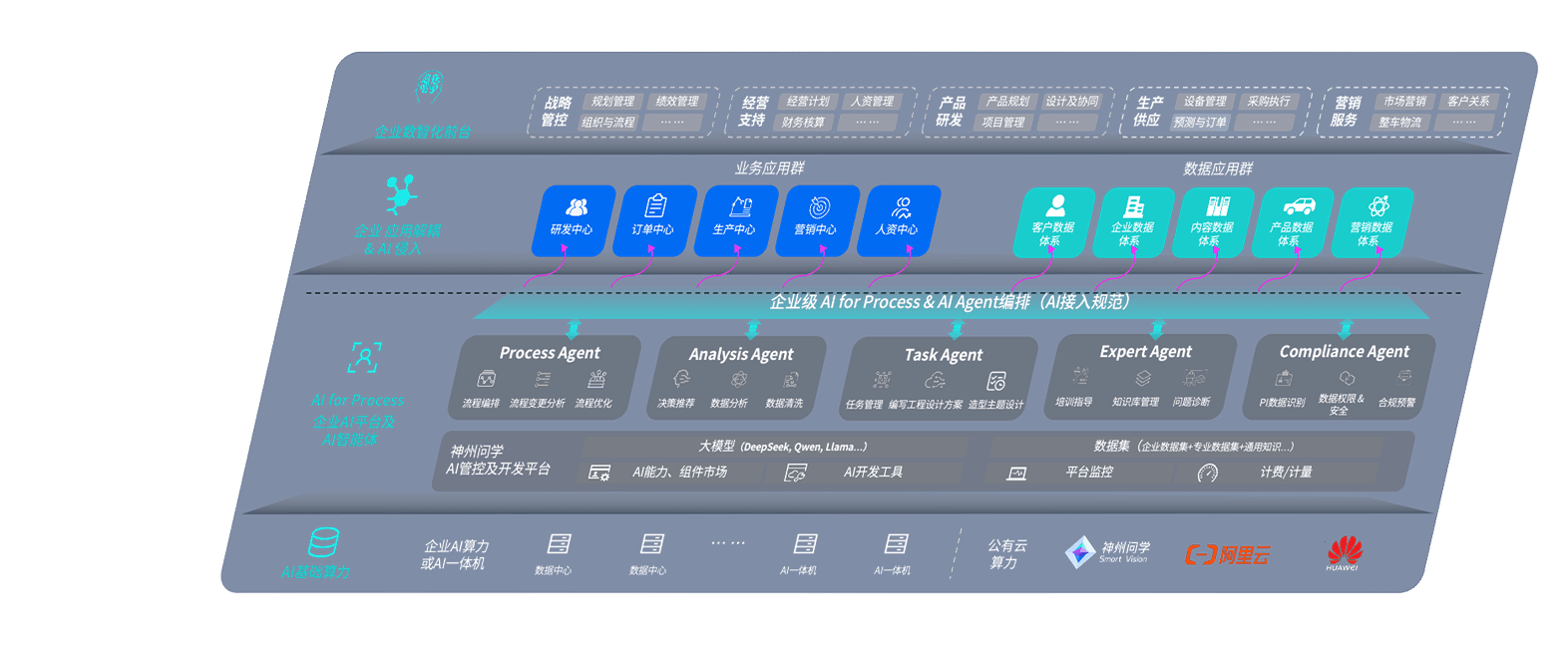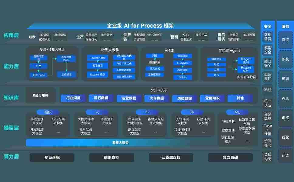 端到端的一站式AI工作空间深度融合了从企业战略规划到日常经营的全流程业务板块,,,定向解决车企内部领域多、、、部门多、、、链条长、、、、场景碎片化等难题,,支持车企快速构建以AI为核心的生产力写作体系,,实现任务执行与AI能力的无缝集成与交互